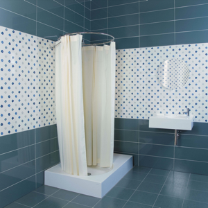Colorker Elegance series uses soft solid colors and bold patterned decorative tiles to deliver color and geometric interest to any bathroom application.